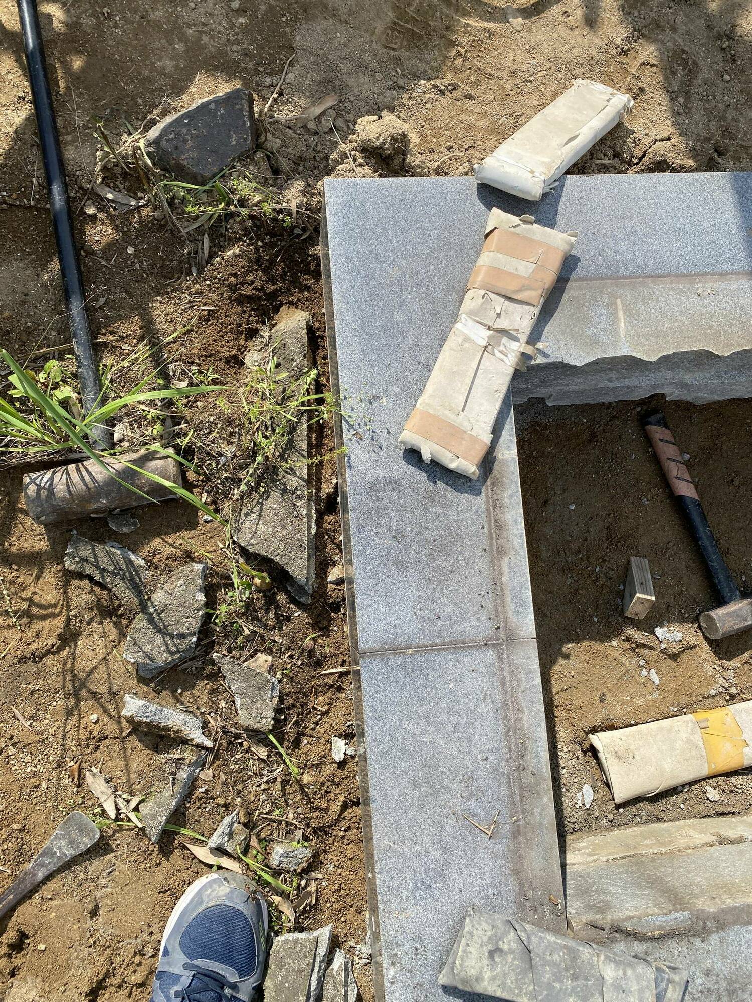 福山市引野町墓石施工工事②巻石据え付け、墓石基礎工事