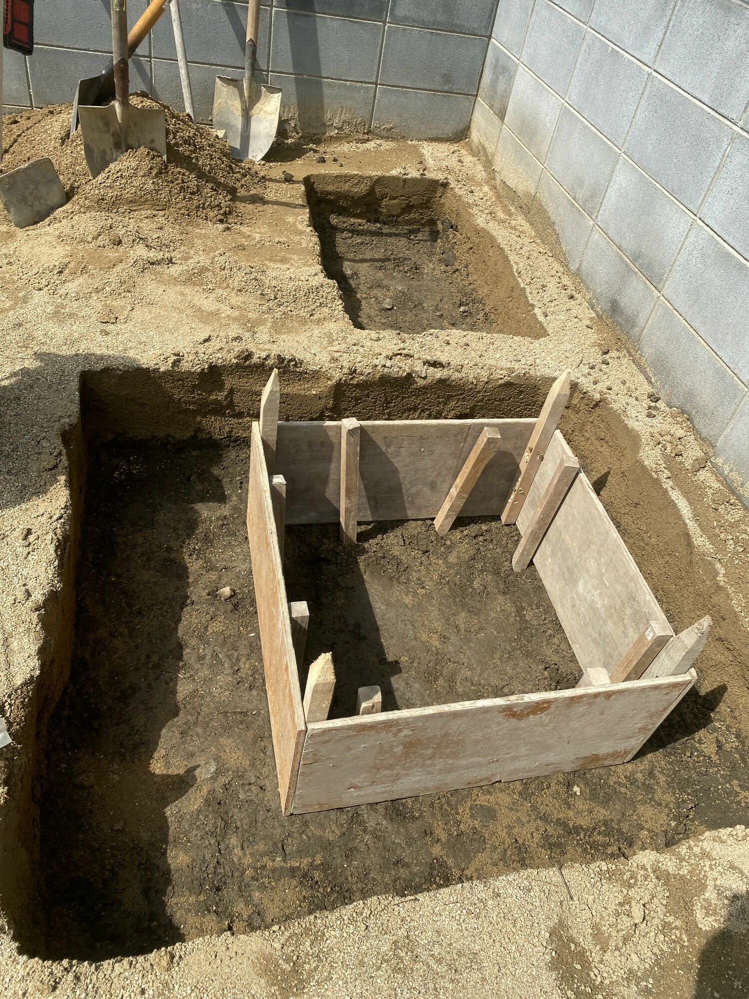 本日は資材運搬と掘削、型枠設置で終了となりました。