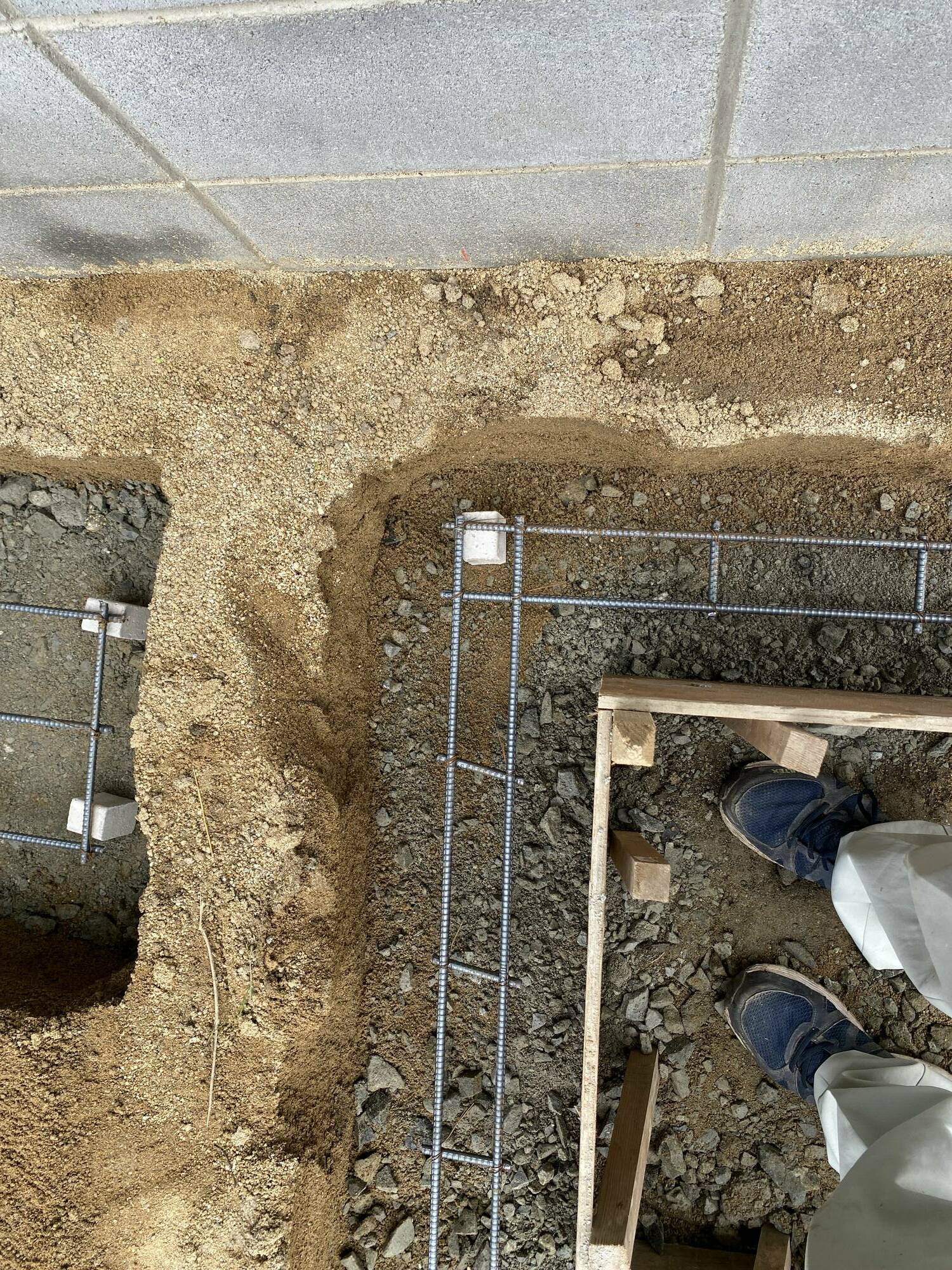 まずは基礎コンクリートの型枠の脱枠をしていきます。内側部分もしっかりとコンクリートが詰まっている状態が確認できました。