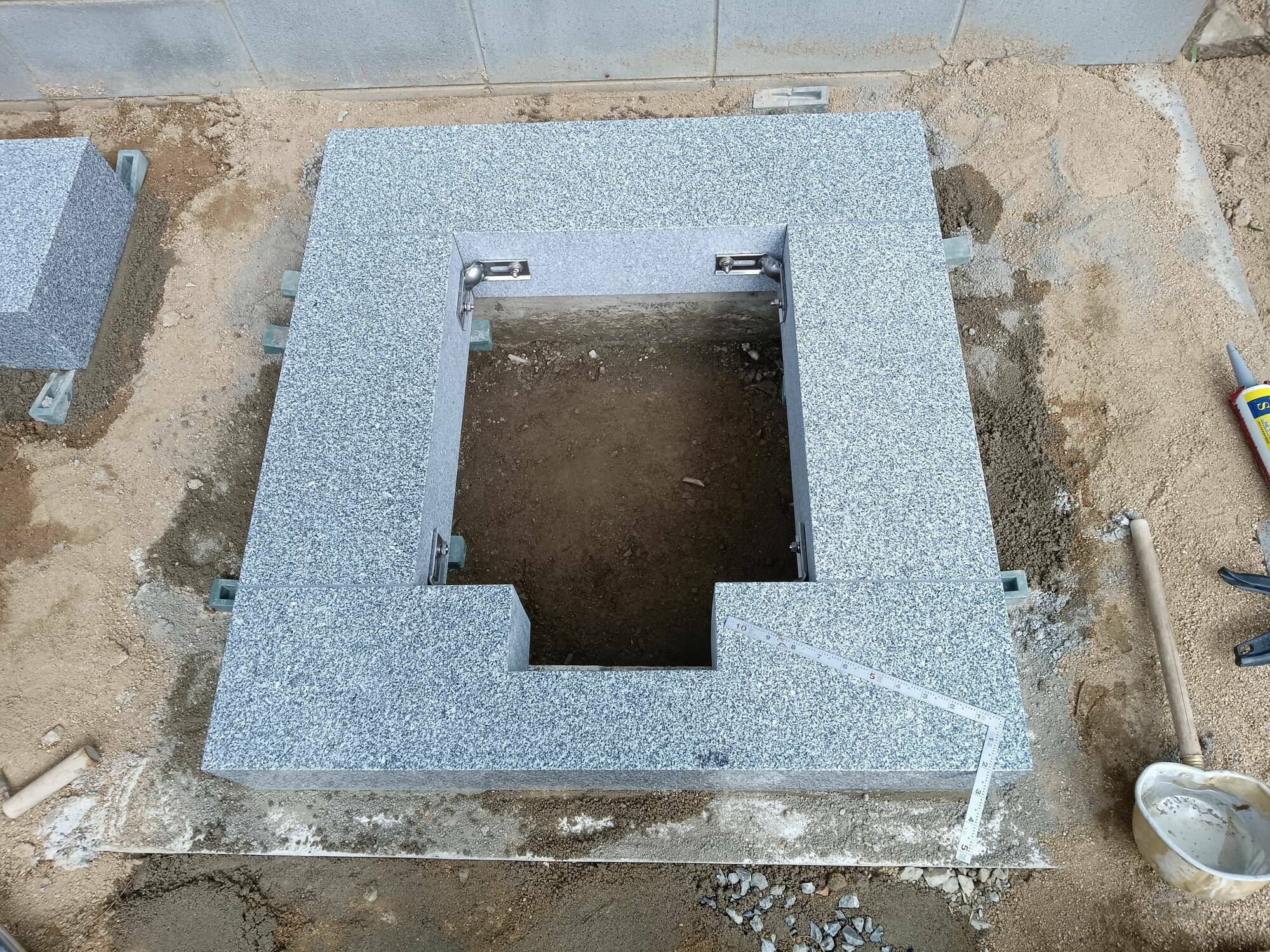 府中市篠根町墓石施工工事③四ツ石芝台など据え付け