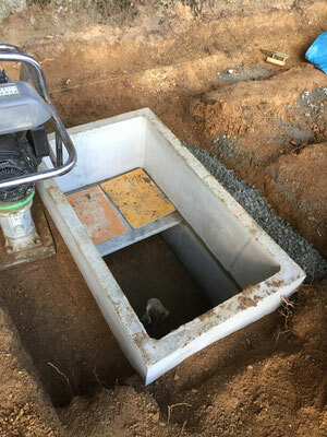 翌日に永代墓用のカロートを据え付けました。2段式なので据え付けも難しいのですが何とか完了です。その後、周囲を埋め戻した後転圧し、砕石を敷き詰めて再転圧を行いました。次回はカロート周囲に鉄筋コンクリート基礎を打設します。