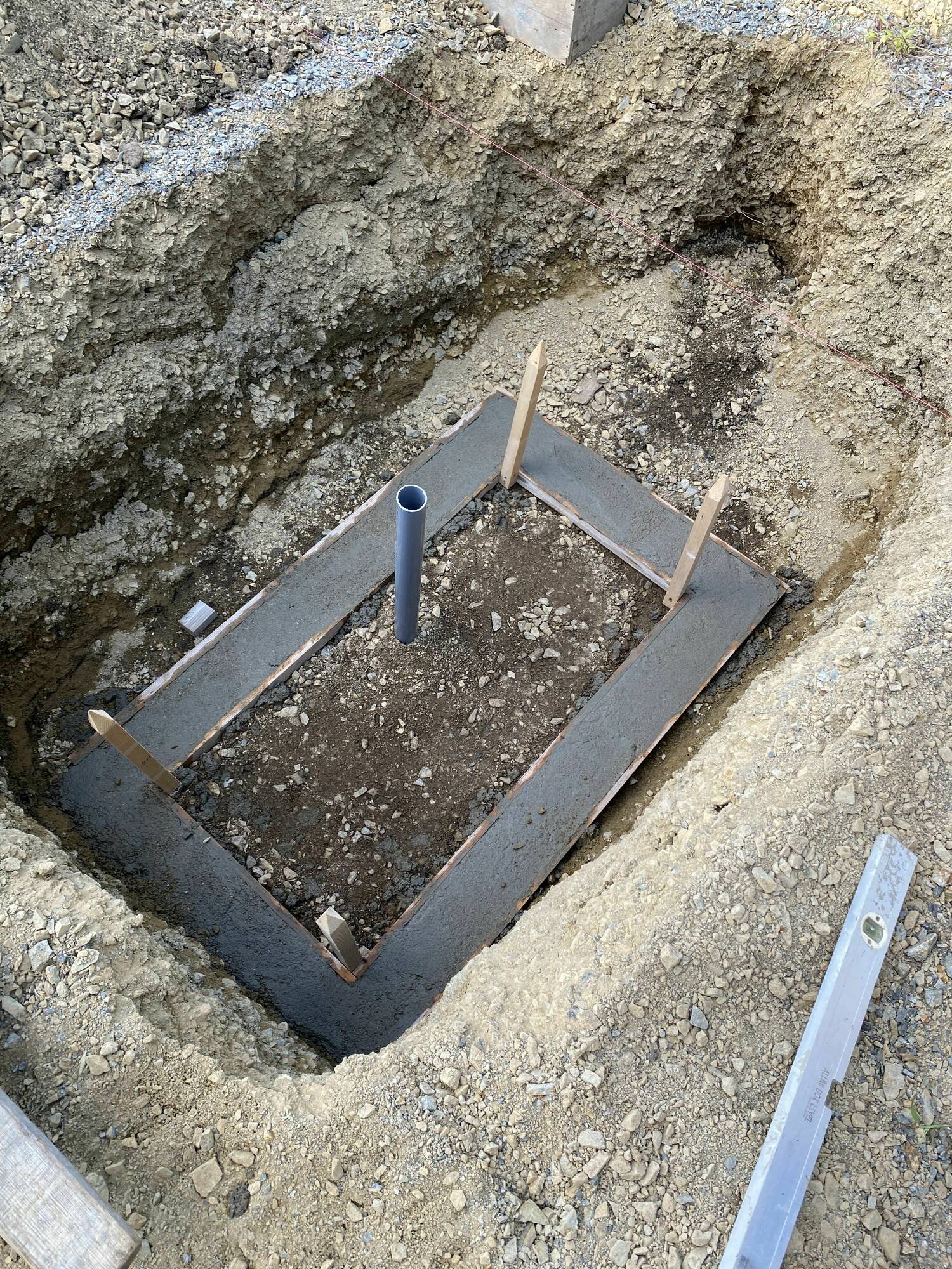 バックホーを使用して掘削していきます。今回は地盤もかなりしっかりしていていますが、既定の深さまで掘り進めていきます。