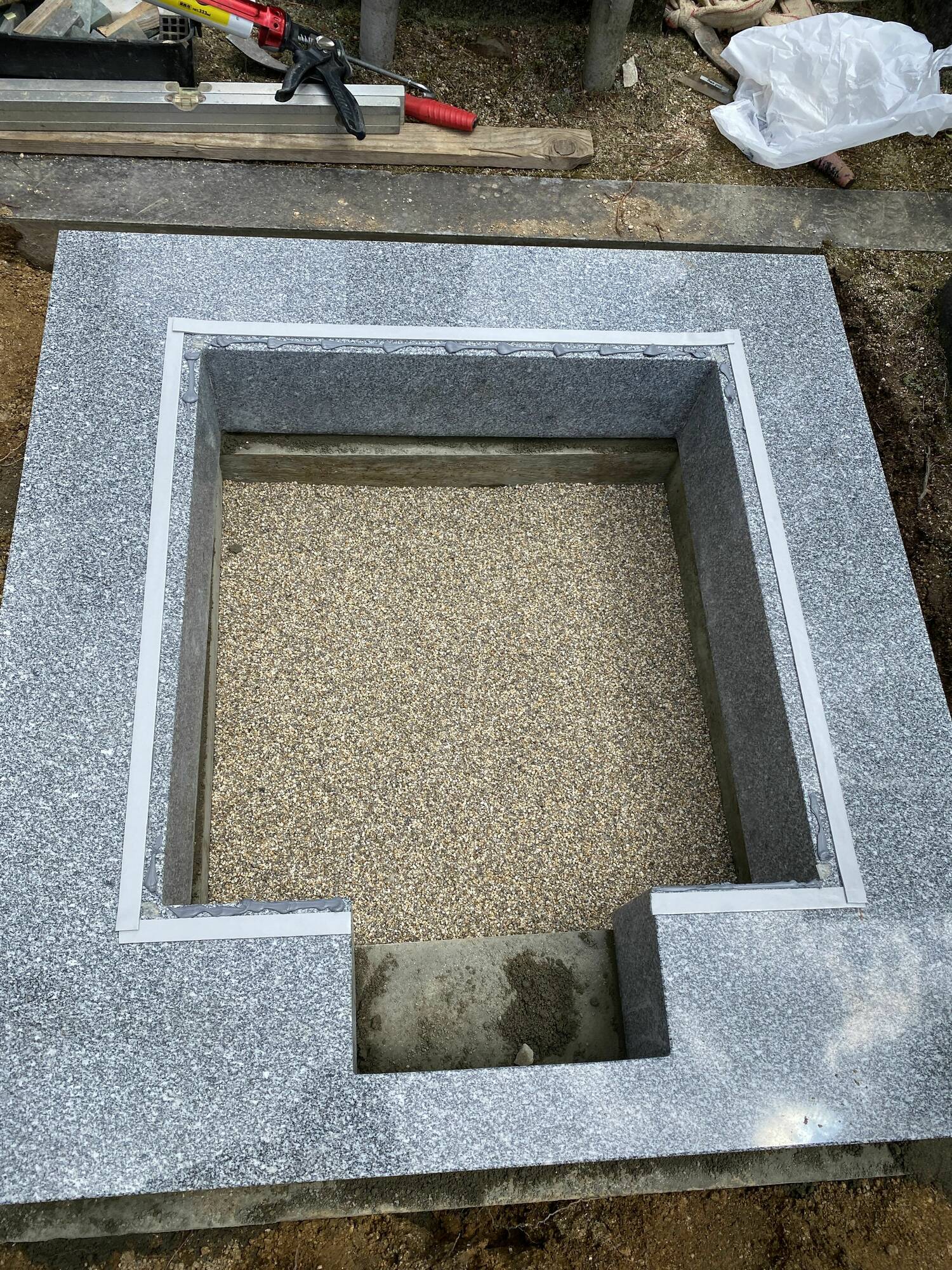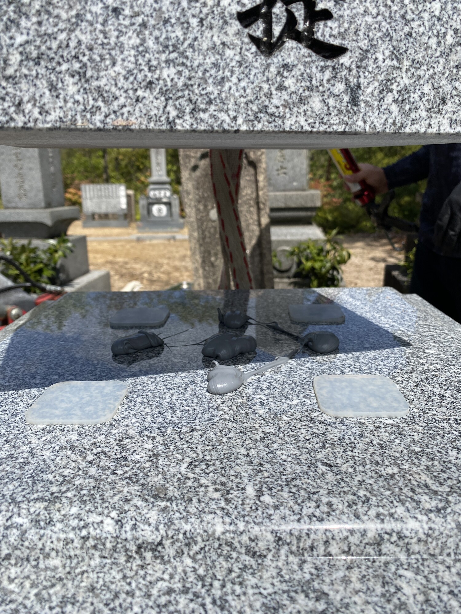 芝台と下台は耐震ボンドを使用して据え付けます。