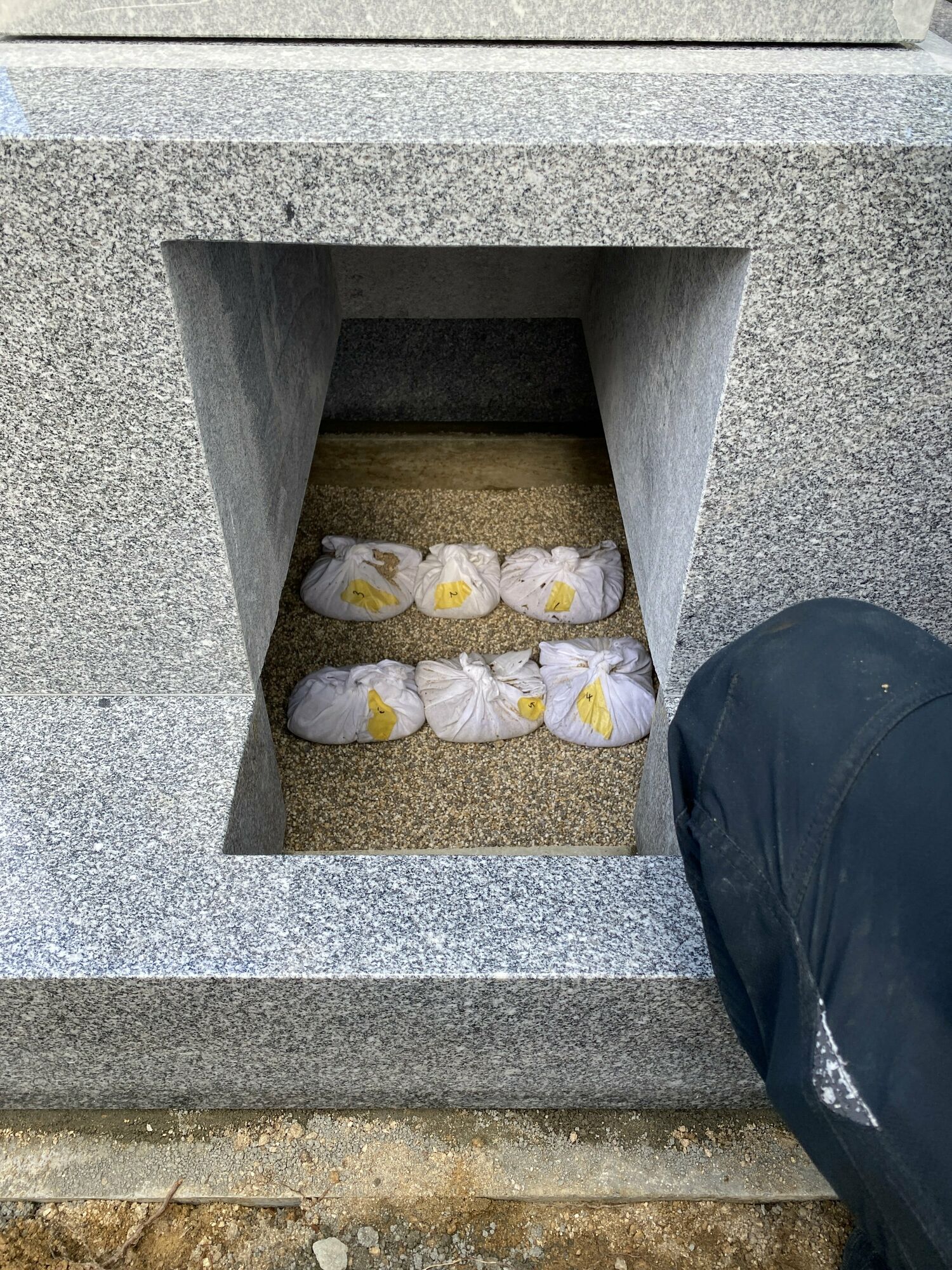 納骨を行います。亡くなられたのが早い順に右奥から並べていきます。