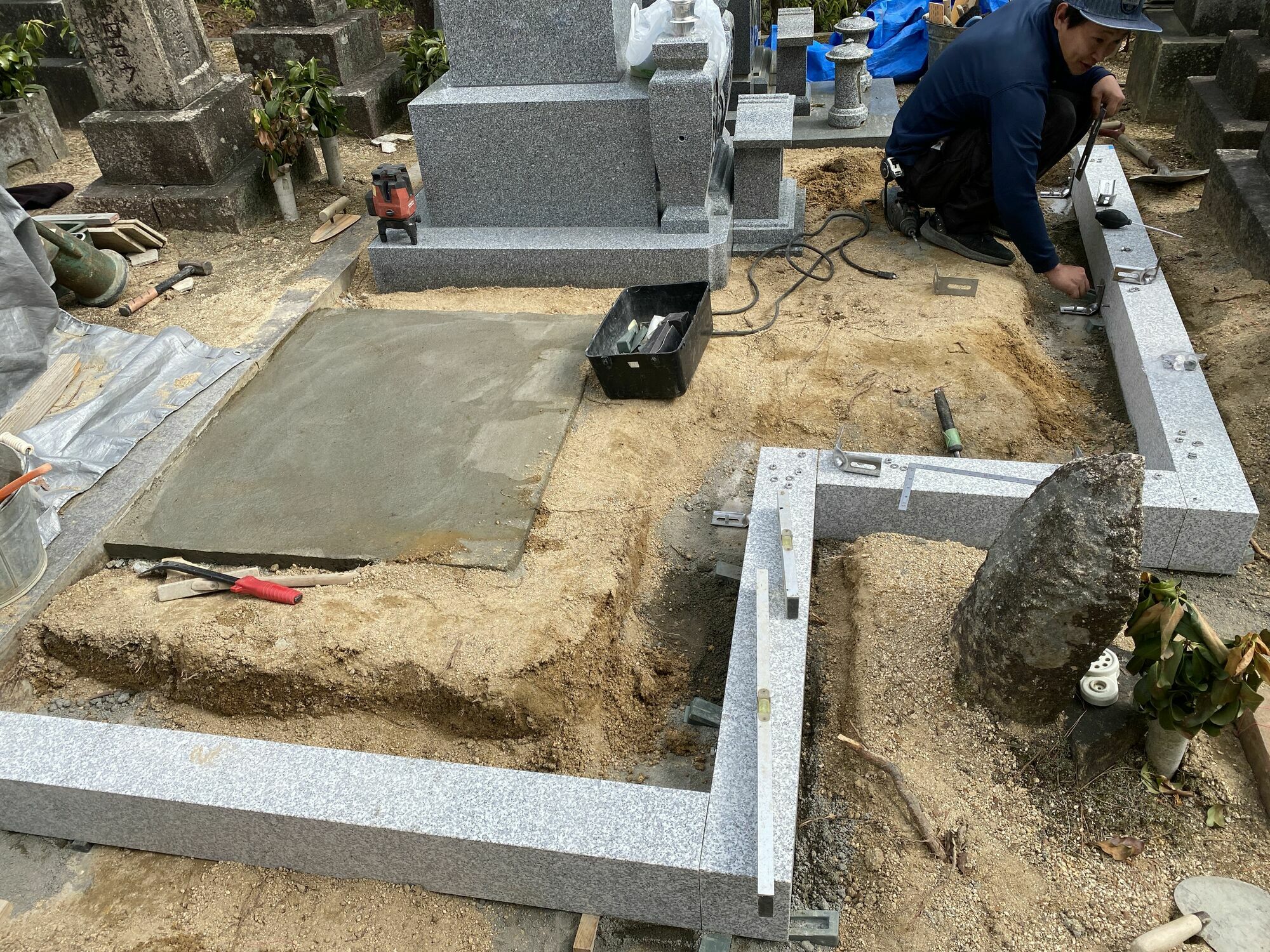 次回は古墓の竿石の据え付けと台石の据え付け、その他追加依頼を頂いた石材の据え付け工事で完了となります。